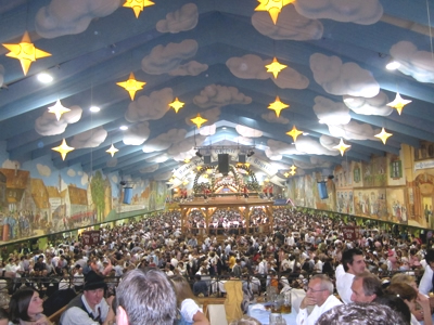 Auf dem Oktoberfest gibt es 14 große Bierzelte. Die bekanntesten aus "Funk- und Fernsehen" sind die Promizelte "Hippodrom" und die "Käfer Schänke ". Besonders schön ist aber auch das Hacker-Pschorr Zelt, das auch "Himmel der Bayern genannt wird.