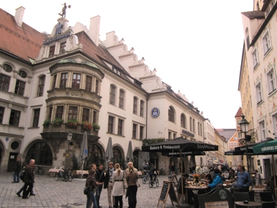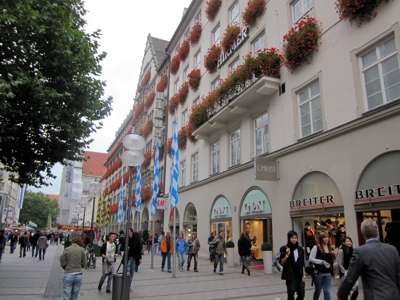Fußgängerzone und Stachus (Karlsplatz) Weiter in Richtung Westen kommen sie zum Karlstor, eines der drei mittelalterlichen Stadttore Münchens. Hier endet die Fußgängerzone. Der große Platz mit dem Brunnen heißt Karlsplatz, wird aber immer nur Stachus genannt. Jetzt kann man zurück zum Marienplatz bummeln und von hier aus die nördliche Gegend um den Marienplatz erkunden. Nobel Shopping und Geschichte Nördlich hinter dem Marienplatz führt die Weinstraße und Theatinerstraße auf den Odeonsplatz. Diese Straßen sind gesäumt von noblen Boutiquen und Geschäften. Hier finden sich auch die edlen Shopping Passagen "Fünf Höfe" (siehe Rubrik Shopping weiter unten). Der Odeonsplatz beherbergt gleich mehrere Sehenswürdigkeiten: Die Theatinerkirche, ein besonders schönes Fotomotiv iund die Feldherrenhalle. Außerdem kann man von hier in den Hofgarten gehen. Eine Ruheoase mitten in der Stadt. Wenn man jetzt wieder ein Stück zurückgeht, geht man an der Residenz vorbei. Hier regierten einst die Könige der Wittelbacher, heute kann man die Räume besichtigen. Wenn man die Residenzstraße wieder Richtung Marienplatz geht kommt man zur Maximilianstraße und zum Nationaltheater, der Sitz der Bayrischen Staatsoper. Die Maximilianstraße ist eine Prachtstraße in der heute Prada und Gucci residieren. Wenn Sie hier entlangschlendern bekommen Sie mit Sicherheit viele teure Autos zu sehen, viele teure Geschäfte und das Kempinski Vier Jahreszeiten Hotel. Am Ende der Straße kann man von weitem das Maximaleum, den Sitz des bayrischen Landtags sehen. In München steht ein Hofbräuhaus .... Wer von der Maximilianstraße in die Marstallstraße abbiegt kommt zu dem schönen Platz mit dem Namen "Platzl". Hier ist das berühmte Hofbräuhaus zu Haue, das immer gut besucht ist. Gegenüber liegt das Hardrock Cafe und der Meisterkoch Alfred Schubeck ist gleich mit mehreren Lokalen am Platzl vertreten. Mit den Südtiroler Stuben, dem Orlando und einem Gewürzshop. 2. Englischer Garten mit Eisbach und Chinesischer Turm Biergarten: Der Englische Garten ist die grüne Lunge Münchens und hat sein ganz eigenes Flair. Er gehört sicherlich zu den bekanntesten Parkanlagen in Deutschland - auch dank der alljährlichen Fernsehbilder der "Nackerten" sobald sich der Sommer zeigt. Er ist Wenn man von hier Richtung Norden geht, kommt man zuerst am Monopteros vorbei, der wie ein griechischer Tempel aussieht und von dem man eine gute Aussicht auf München hat. Und dann kommt man zum bekanntesten Biergarten Münchens: dem chinesischen Turm Biergarten. Hier ist es immer voll und Sie treffen hier ein Multi-Kulti Publikum. Touristen und Einheimische prosten sich hier zu. http://de.wikipedia.org/wiki/Englischer_Garten