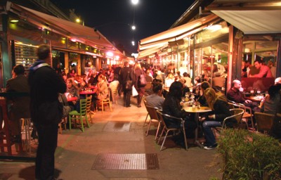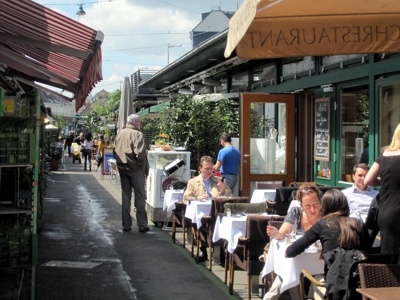 Hier gibt es kleine Restaurants mit vielen Sitzplätzen draussen (auch bei kühleren Temperaturen dank Decken und Heizstrahlern) und natürlich viele Marktstände mit vielen Spezialitäten in schönen Jugendstil-Marktständen. Die Restaurants füllen sich besonders in den Abendstunden und sind teilweise überfüllt. Hier kann man ein schönes Glas Wein trinken und etwas kleines oder auch exklusiveres Essen mit Sehen und Gesehen werden Faktor.