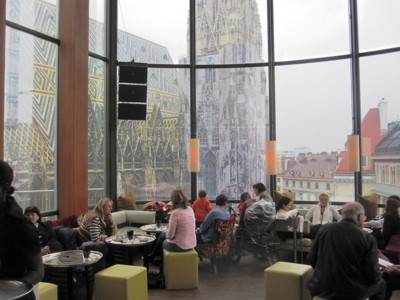 Am Stephansplatz treffen das moderne und traditionelle Wien aufeinander. Gegenüber vom Stephansdom steht das moderne Haas Haus, in dem u.a. ein Shopping Center und ein Hotel untergebracht sind. In dem Hotel Cafe kann man mit besonders gutem Blick auf den Stephansdom einen Cafe trinken.