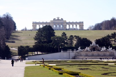 Schloß Schönbrunn ist die Sommerresidenz der Habsburger. Das Schloss hat 1400 Zimmer, 40 davon können besichtigt werden. Besonders schön ist auch ein Rundgang durch den Schloßgarten. Er berherbergt ein Palmenhaus, den Tiergarten und die Gloriette, die auf einem Hügel thront und einen wunderschönen Blick über Wien bietet. Wer möchte kann hier auch in einem Cafehaus verweilen, dass sich in dem prunkvollen Säulenbau auf dem Hügel befindet und einen Blick über die gesamte Schloßanlage bietet.